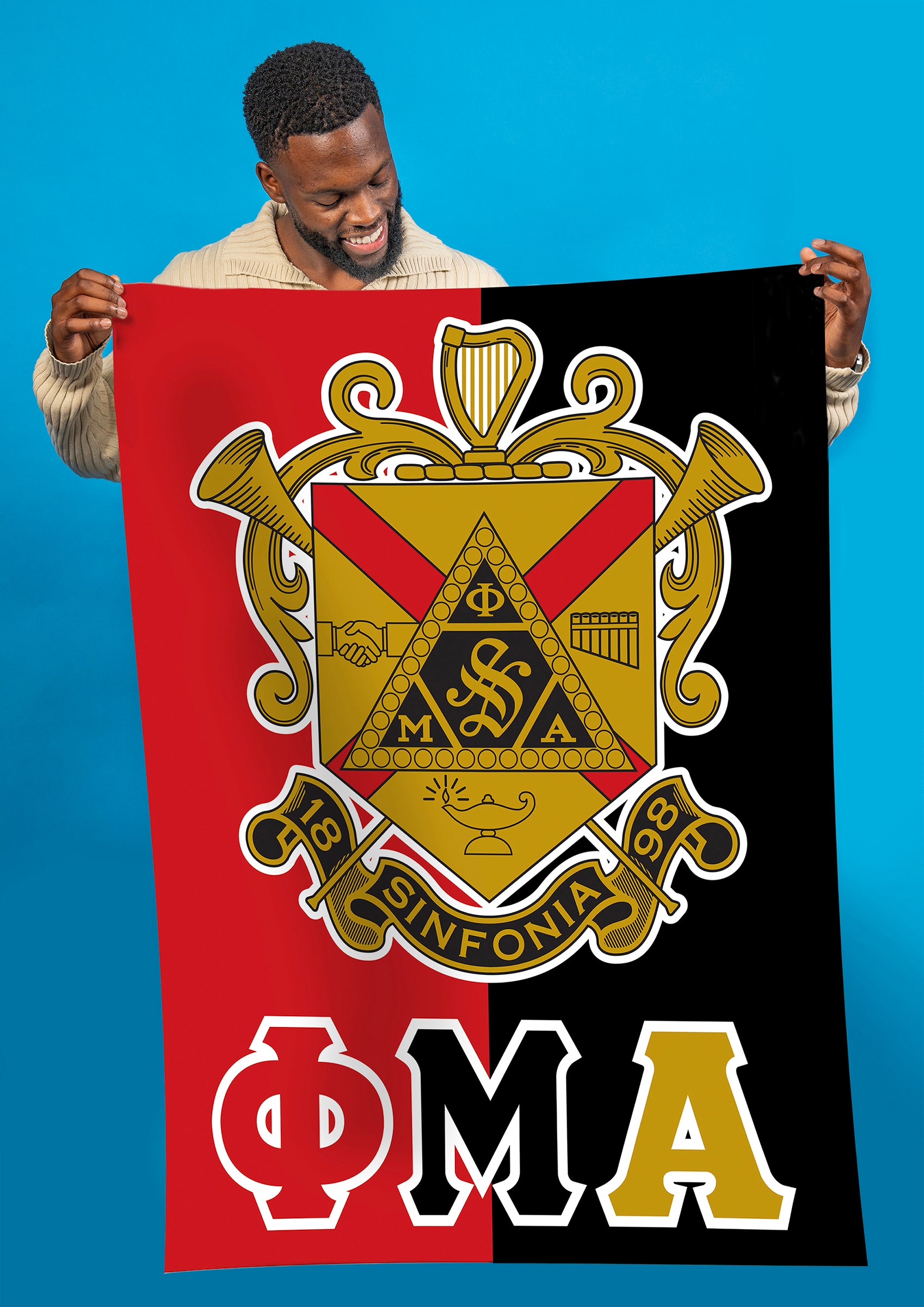 Beautiful, warm blanket featuring an attractive tri-color Greek Letter / Coat of Arms design.