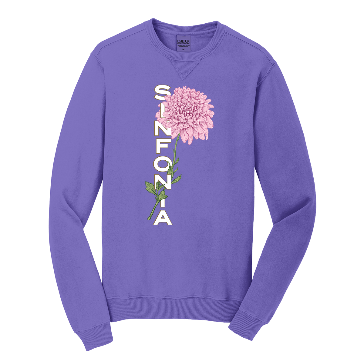 Pink Chrysanthemum vertical design printed on a unique and incredibly soft crewneck with a worn-in, vintage look. Available in THREE colors! Perfect for Sweethearts, probationary members, partners, significant others, parents, or yourself!