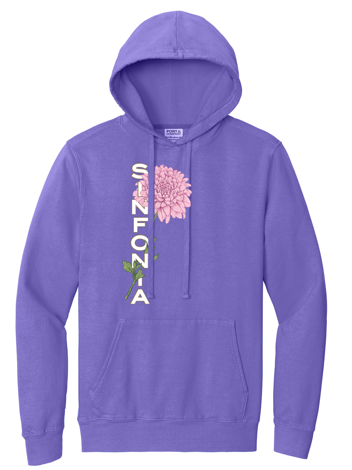 Pink Chrysanthemum vertical design printed on a unique and incredibly soft hoodie with a worn-in, vintage look. Available in THREE colors! Perfect for Sweethearts, probationary members, partners, significant others, parents, or yourself!