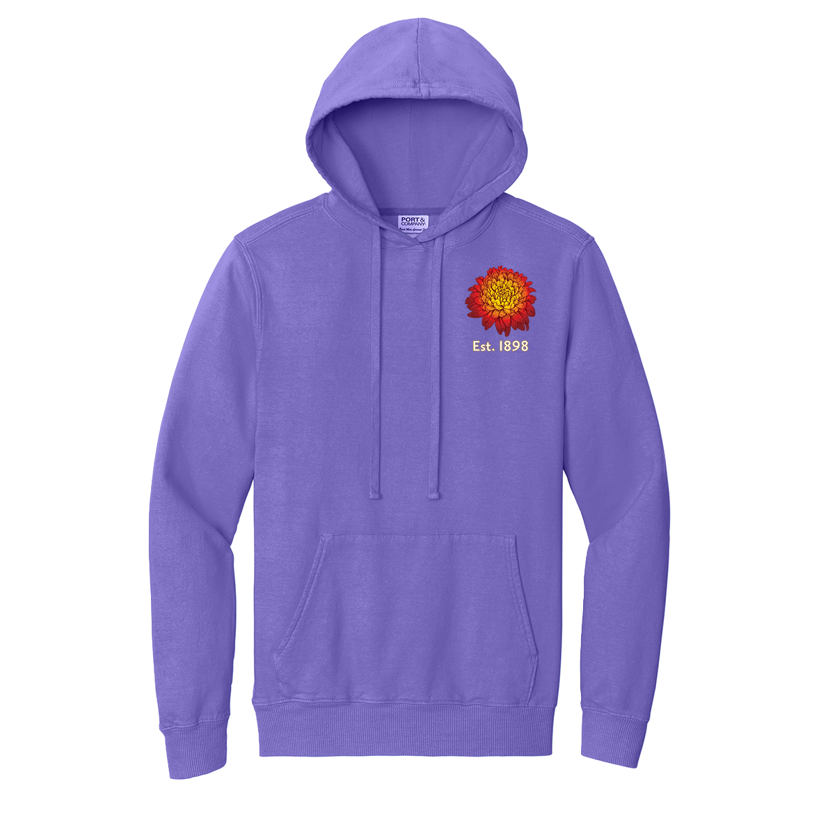 Red Chrysanthemum left-chest design printed on a unique and incredibly soft hoodie with a worn-in, vintage look. Available in THREE colors! Perfect for Sweethearts, probationary members, partners, significant others, parents, or yourself!