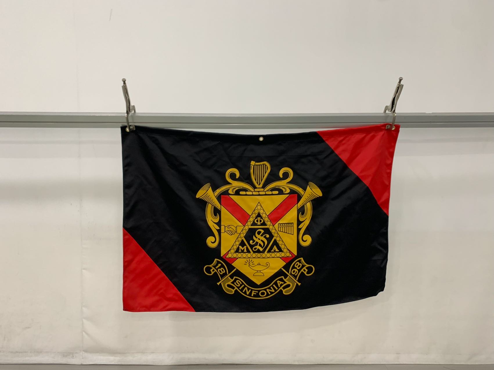 Our official flag. This iconic symbol of Sinfonia features a full-color reproduction of the official Coat of Arms and includes reinforced brass grommets on top edge to allow you to proudly hang this icon of the spirit of Sinfonia from any wall. 3'x5'