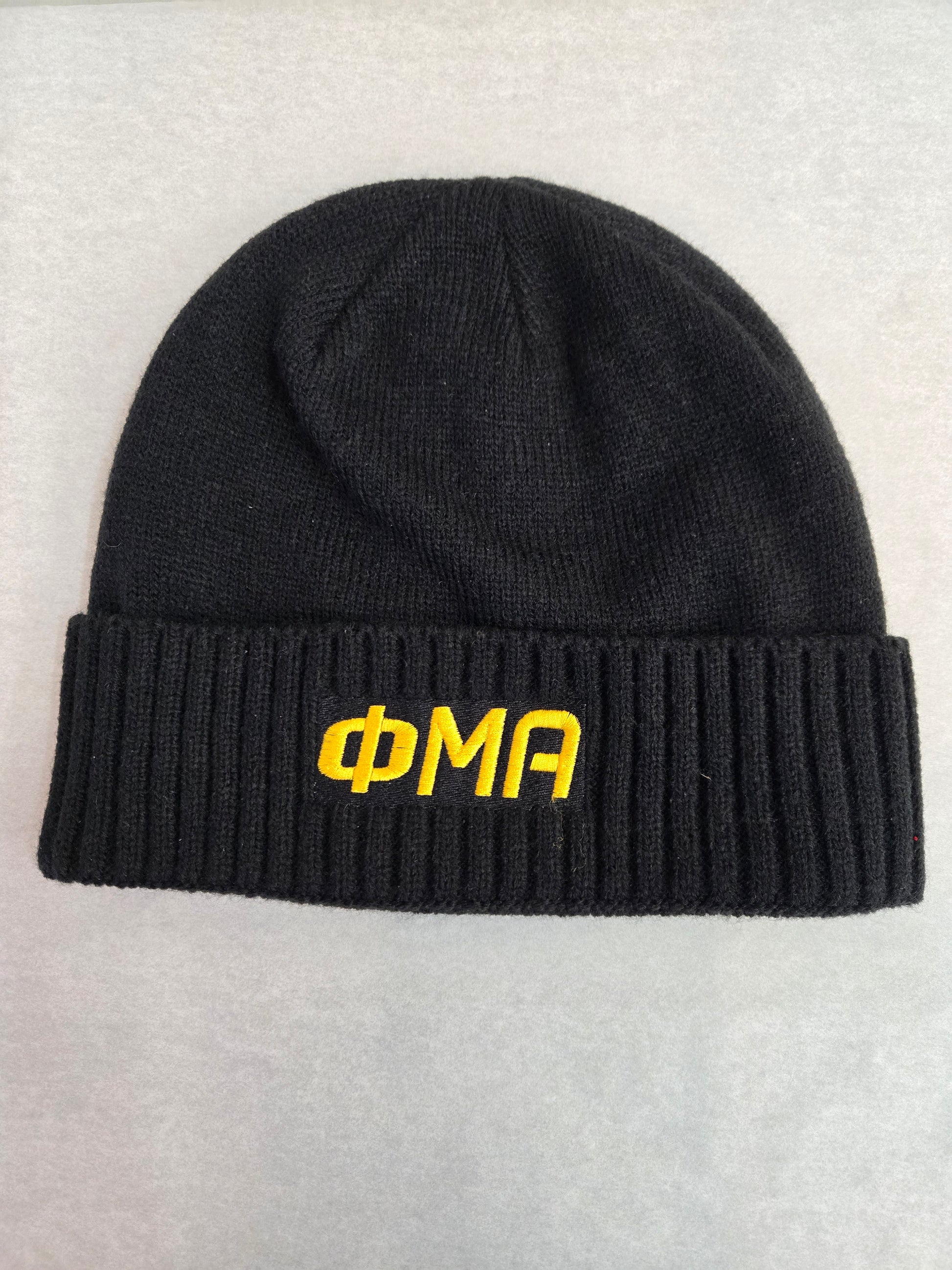 Black ribbed cuff beanie with Gold Sporty Greek Letters