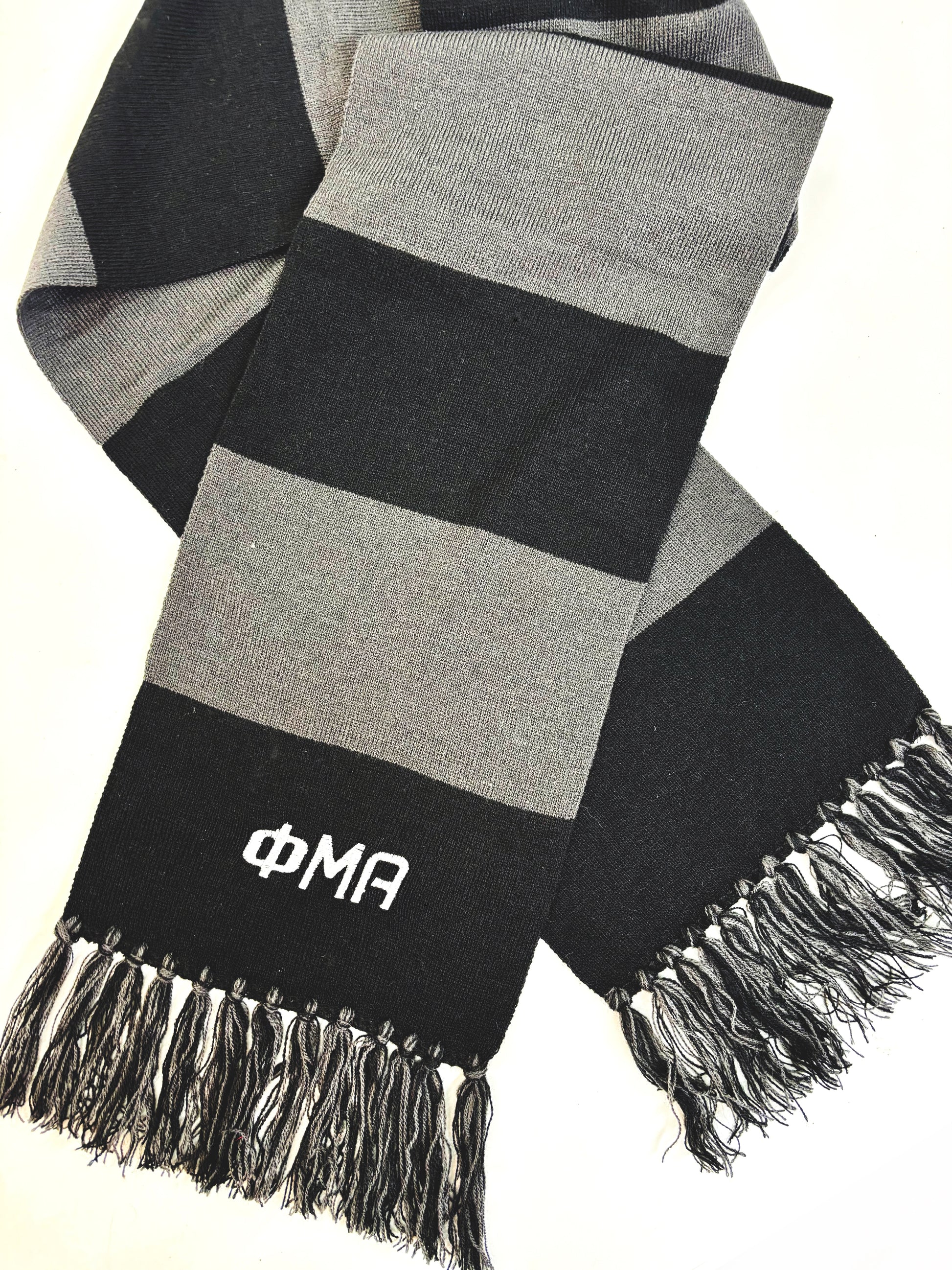 Spectator Scarf - Black and Charcoal (white embroidery)