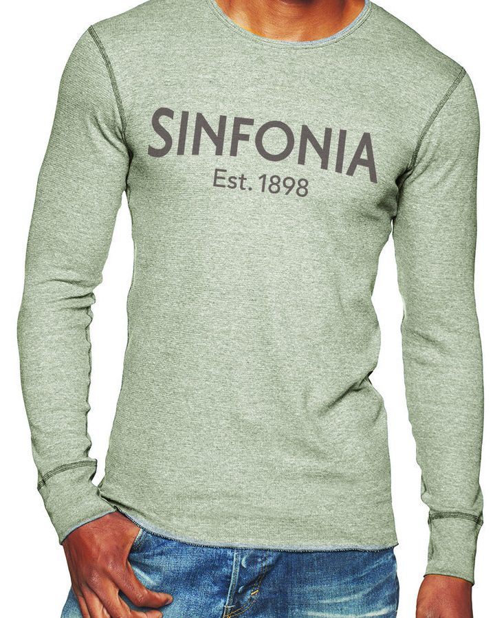 The Sinfonia Thermal Tee is made of 5.6 oz. 60% combed ringspun cotton, 40% polyester waffle thermal fabric and is available in sizes S-2XL.